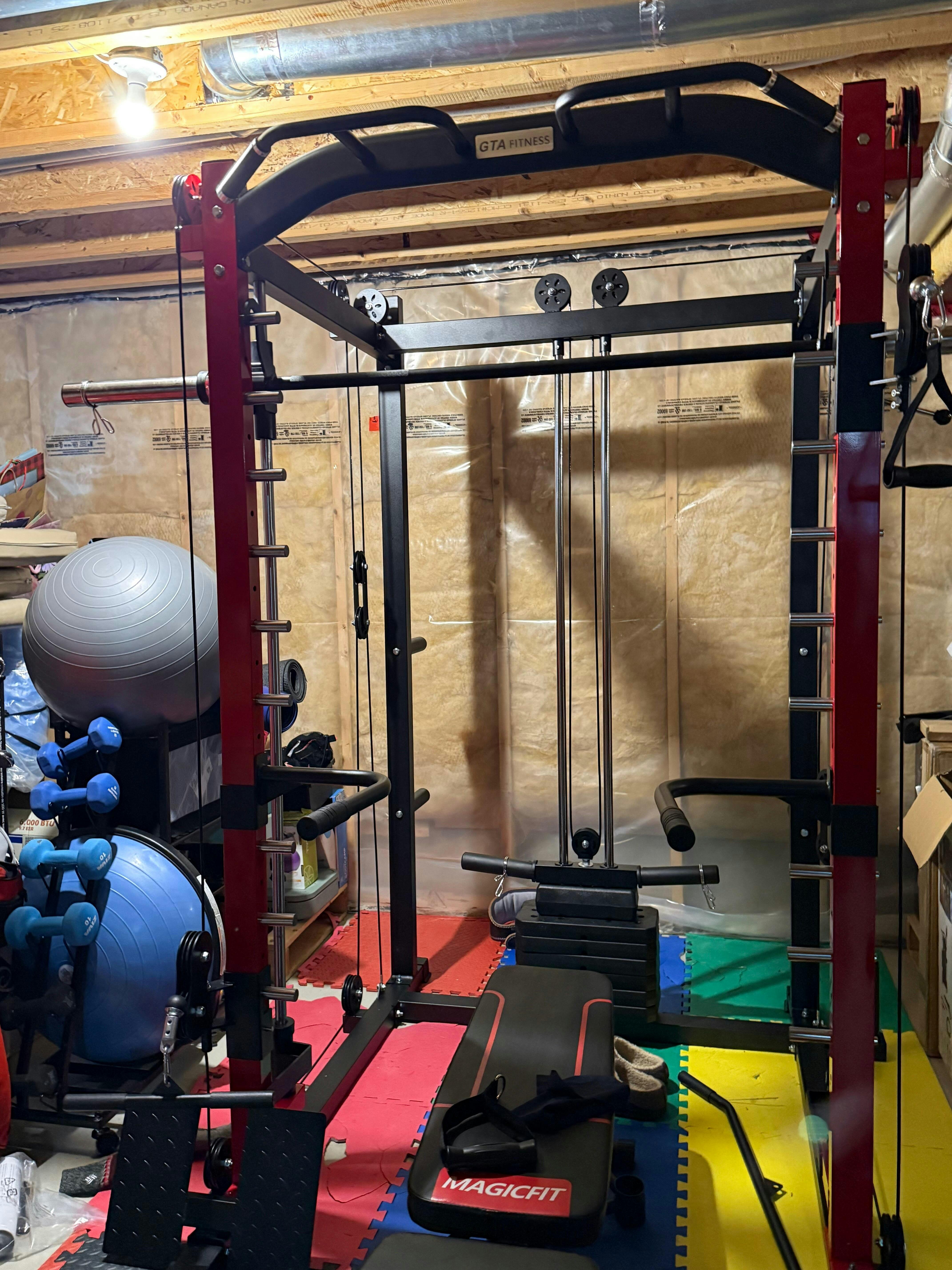 The All-in-one Smith Machine with 75 LB or 150 LB Weight Stack is best for strength training, cable exercises, and full-body workouts. Our machine comes with several attachments like J Hooks, Safety Bars, Lat Pulldown Bar, and more, allowing you to do more exercises without switching equipment. Every time you train with our Smith machine, you get steady, controlled movement that helps you lift with more focus and confidence.